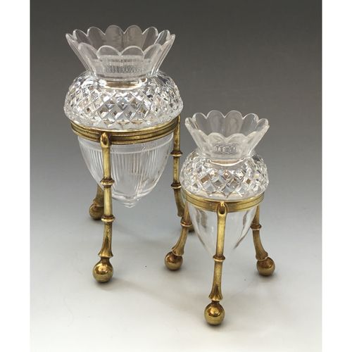 Flower Holder, electro-gilt tripod supporting a cut glass Flower Holder, height 7 1/2", Credit Rs 28; Cash Rs 25