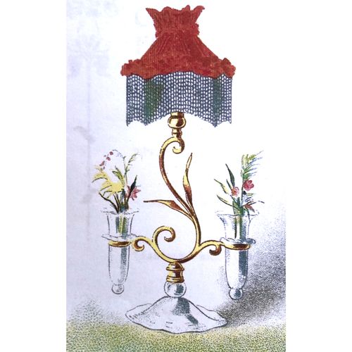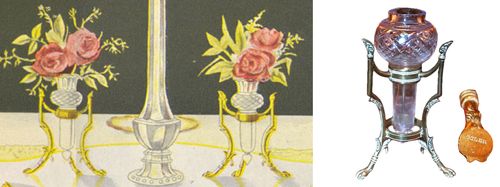 The brass stand illustrated in the December 1899 advertisement is shown on the right. While the crystal posey is different, the three-legged brass stand is the same. The brass stand is stamped "Osler" on the foot supporting the F & C Osler attribution.