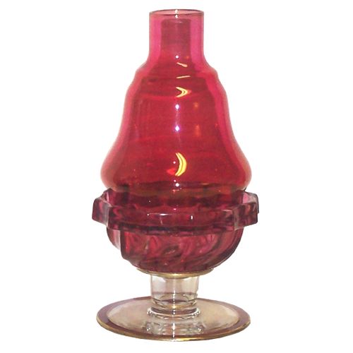After the turn of the century, approximately 1909, Fostoria produced several lines of short candlesticks to which they added a chimney and a lamp base and called them Candle Lamps. These are closely associated with and are often confused Clarke's Cricklites.