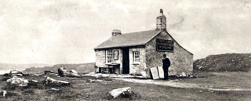 As the name of the building implies, this is indeed the first or last house in mainland Great Britain you would see from a boat whether or not they were arriving or leaving England. Located on the cliff tops of Land's End (which is the most westerly point of mainland Britain) the cottage was built in around 1859 for Gracie Thomas. She ran it as a souvenir shop selling small pieces of granite with Land's End stamped on them. The sign on the side of the building actually read “The First & Last Refreshment House in England.”