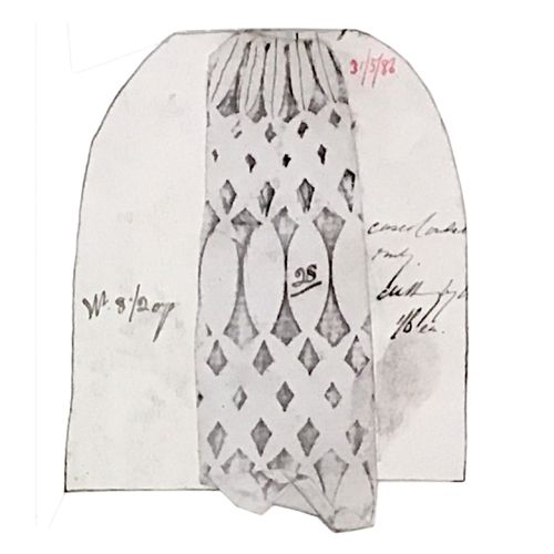 These designs are from several 1886-87 H. G. Richardson's Pattern books. They have been reproduced with kind permission of Dudley Archive services. These fairy lamp designs are to use for research purposes only and may not be reproduced in any periodical or formal publication.