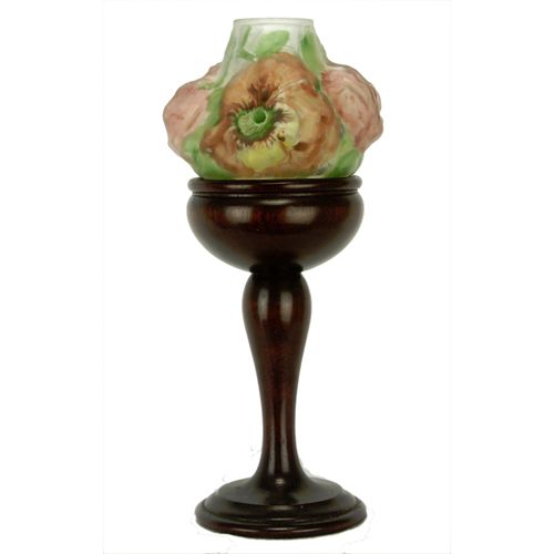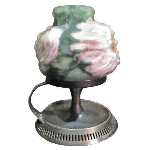 In 1900, the Company reorganized as The Pairpoint Corporation. Large quantities of translucent white glass were produced for colorful enamel decoration, and in the early 20th century the company's distinctive decorated lampshades gained international popularity. (Reversed painted and puffy lampshades.)