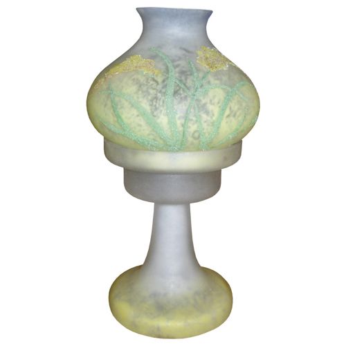 In 1880, the Pairpoint Manufacturing Company (named after its first superintendent, Thomas J. Pairpoint) was established in New Bedford to supply Mt. Washington with attractive silver-plated metal mounts. The companies thrived and collaborated, and in 1894, merged under The Pairpoint Manufacturing Co. name.