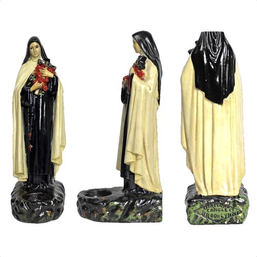 This figure stands 13” tall with a receptacle in the front for a tea light candle and marked by the Diamond Candle Company. St Therese Lisieux who was canonized in 1925.