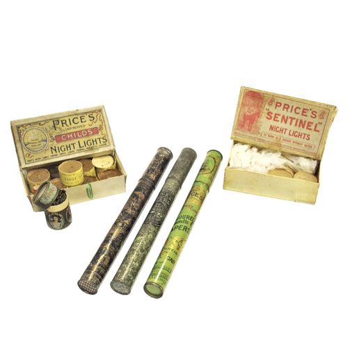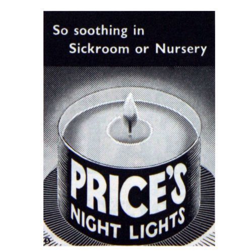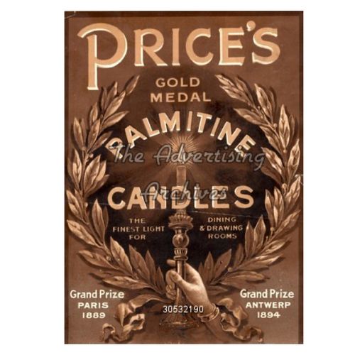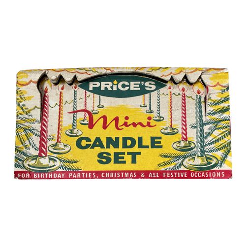 Following are few examples of Price's products, some old, some contemporary, along with some products marketed specifically for use with Prices candles. In addition, there are advertisements, trade cards and postcards that illustrate a broad range of candle products.