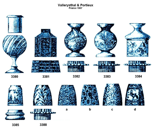 The Vallerystahl Glass factory with plants in both Vallerystahl and Porteaux France has long history of glassmaking. The company was established on November 4, 1838, as "Val de Vallery" (in German it is Vallerystahl).